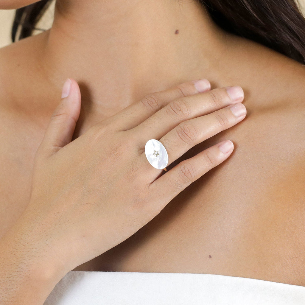 FRANCK HERVAL NORA adjustable oval "MOP" ring