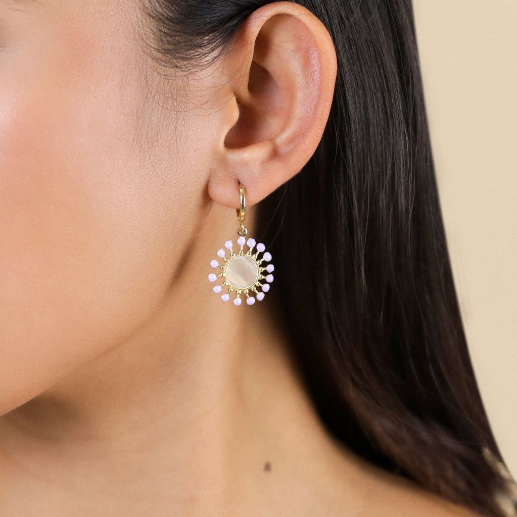 Lauryne is that luminous touch that transforms your everyday life into a sweet interlude. It's the chic softness you've been looking for! Delicate jewelry that highlights the subtle sparkle of brown and white mother-of-pearl, the originality of pink abalone, the freshness of agate, and the luminous softness of howlite. Here, everything sparkles without being over the top, everything radiates with elegance. Gone are the days of overly classic jewelry; welcome to ethereal pieces enhanced with deep garnet, glass beads, and touches of colorful enamel. Lauryne is the poetic and modern touch to add to your look, perfect for displaying a discreet yet assertive femininity.