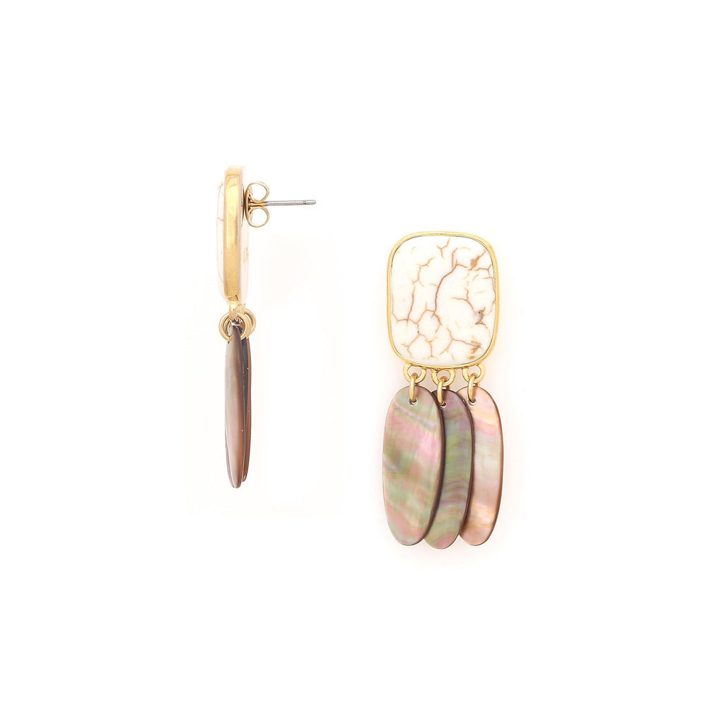 NATURE BIJOUX ALHAMBRA post earrings with 3 brown lip dangles