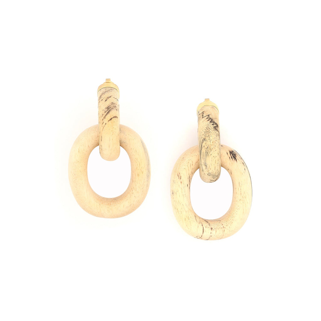 Hand-made from natural tamarind wood, this Earring embodies the harmony of organic material and artisan innovation. Its smooth grain and subtle cream tones, creating a timeless piece that speaks of understated elegance