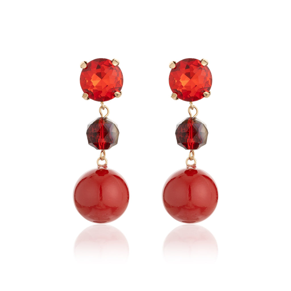 These dazzling crystal earrings, set in radiant gold plated brass, are carefully hand-made to showcase a blend of colourful sparkle and refined style. Their graceful detailing creates an elegant, beautiful accessory that makes a bold yet timeless statement.